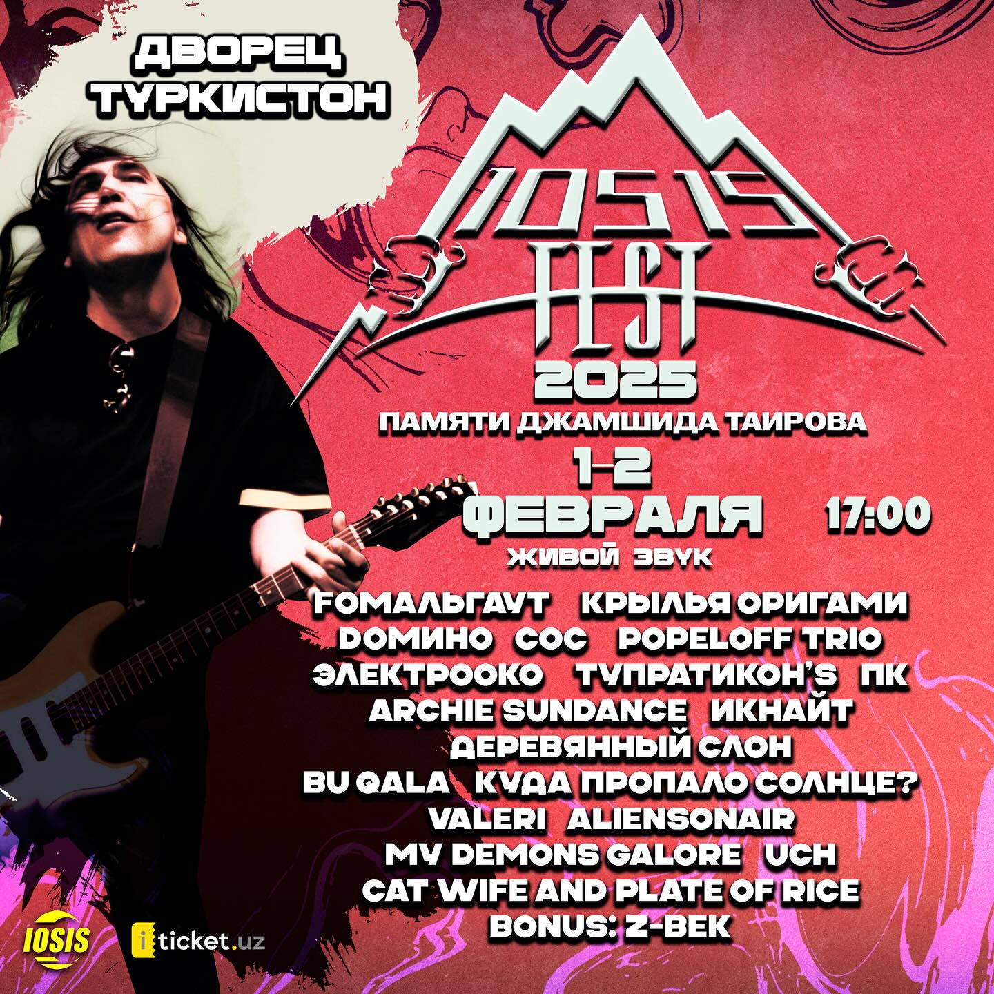 Билеты можно приобрести в кассе Дворца Туркистон, а также во всех кассах, на сайте и в приложении iTicket.uz. (https://iticket.uz/events/concerts/iosis-fest2025)